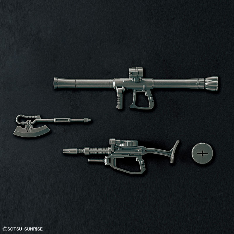●付属品・軟質素材スカートパーツ×1式・PS成形スカートパーツ×1式・ザク・マシンガン×1・ザク・バズーカ×1・ヒート・ホーク×1・ホイルシール×1©創通・サンライズ