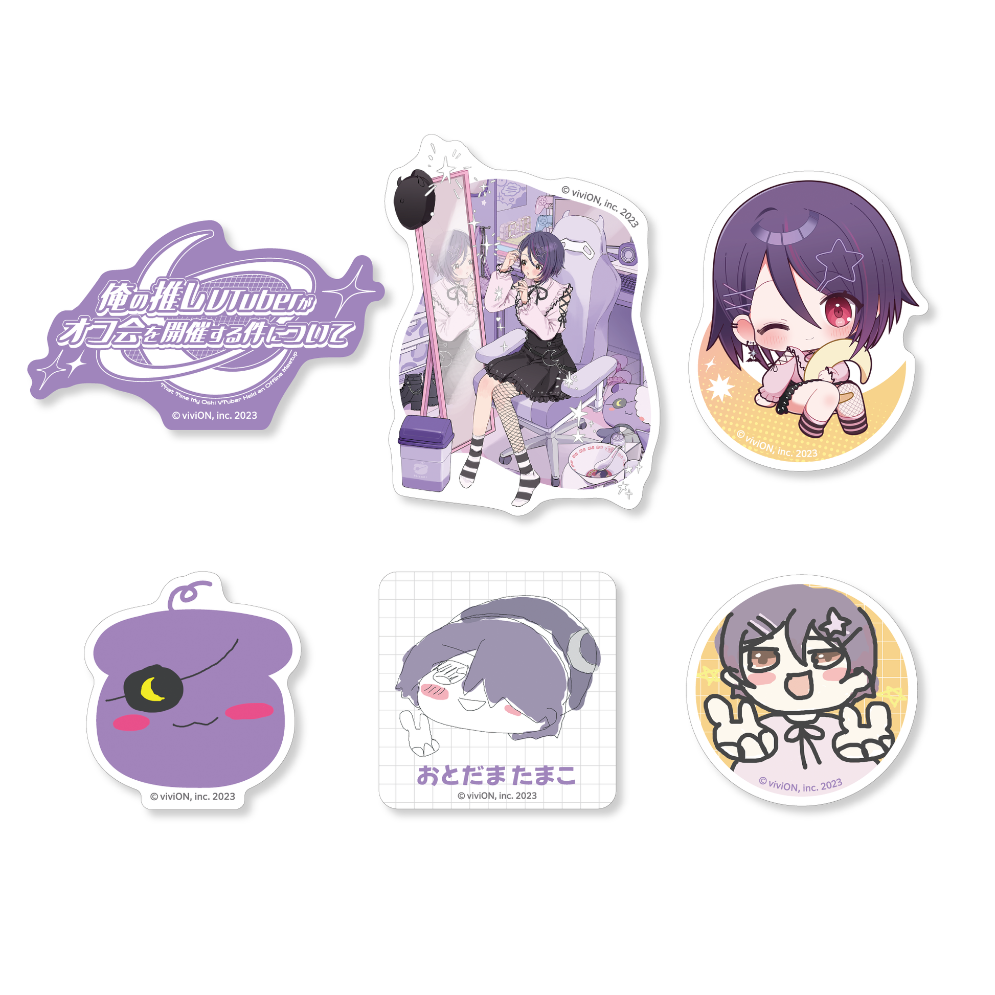 音霊魂子の1st イベント 「俺の推しVTuberがオフ会を開催する件について」グッズのトレーディングステッカーです。