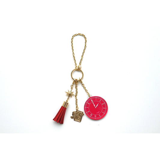 附有流苏、亚克力钟面和角色徽章的奖袋吊饰,颜色为角色的形象色。